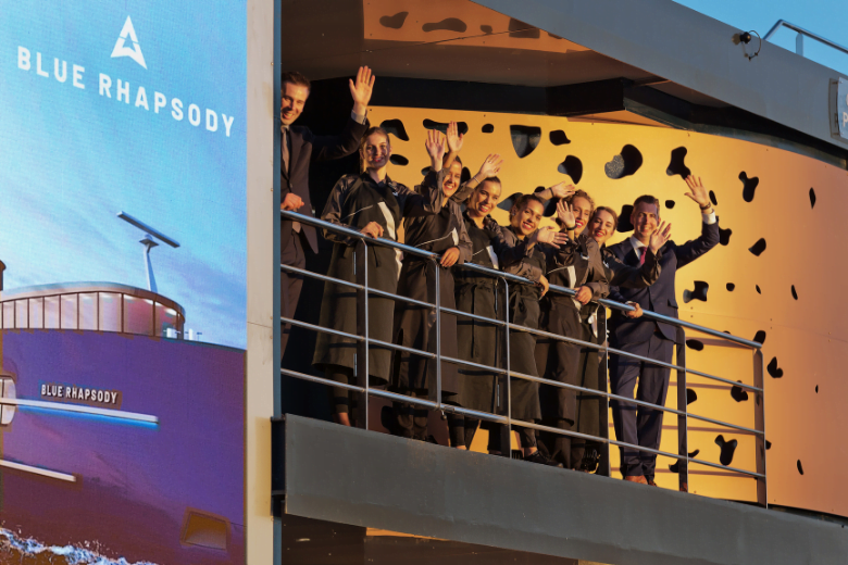 De opdracht: Een uitgeserveerd diner in de Panorama Lounge aan trendy ingedekte tafels. Aansluitend party op het theaterdeck.